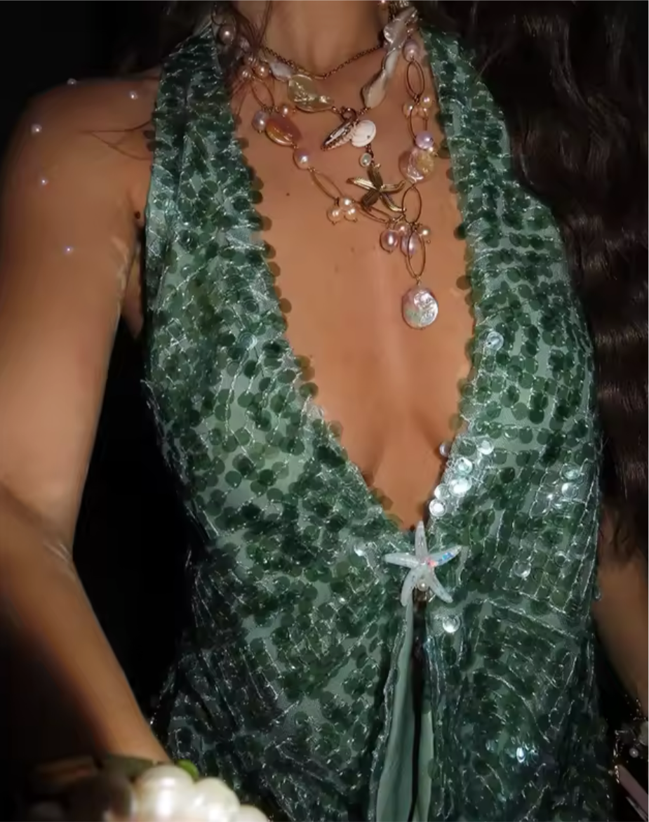Teal Green Cowl Neck Halter Top for Women, Open Back Going Out Top